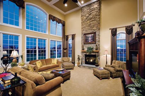 Highlands at Holliston: luxury new homes in Holliston, MA ... from i.pinimg.com Tall ceilings, some of which tower to 2 stories or more, can incorporate other types of ceilings such as vaulted, cathedral, beamed, etc. The stairs are travertine tile and the walls and ceiling are plaster giving this space a very rich and elegant look. More and more homes incorporate tall ceilings in part of their homes, usually the living room or great room because it's simply fabulous. They're not cheap, but if you don't have a vaulted ceiling but want your ceiling to stand out, coffered will do the job. How tall does a 2 story ceiling have to be? The centerpiece of this living room is the 2 sided fireplace, shared with the sunroom. Inspiration for a huge transitional open concept medium tone wood floor and coffered ceiling living room remodel in charlotte with beige walls, a standard fireplace and a brick fireplace The coffered ceilings help define the space within the great room concept and the neutral furniture with pops of color help give the area texture and character.
